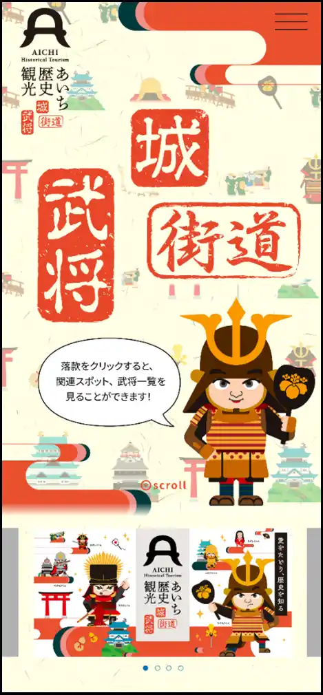 また、これに合わせ、歴史観光ポータルサイト「あいち歴史観光」のトップページのデザインをリニューアルしました。 |