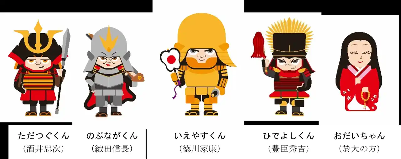 愛知県、県内市町村、観光関係団体、経済関係団体等で構成する「あいちの歴史観光推進協議会」では、2023年大河ドラマ「どうする家康」の放送を契機に作成したキャラクターを活用し、愛知の歴史観光を全国に広くPRすることで、観光誘客の拡大と県内周遊観光の促進を図っています。 |