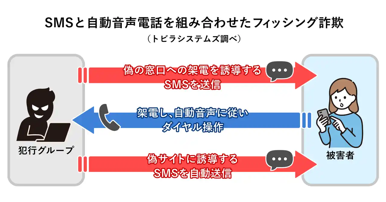 | トビラシステムズの調査により、SMSと架電を組み合わせた新たなフィッシング詐欺の手口が確認されました。 | |||||||