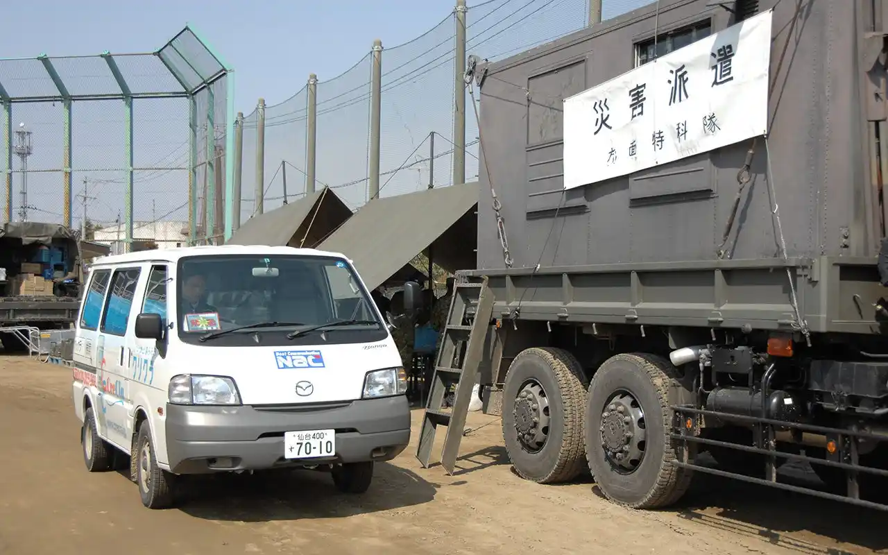 ▲東日本大震災時、宮城県仙台市の避難所にクリクラを納品する様子。 |
