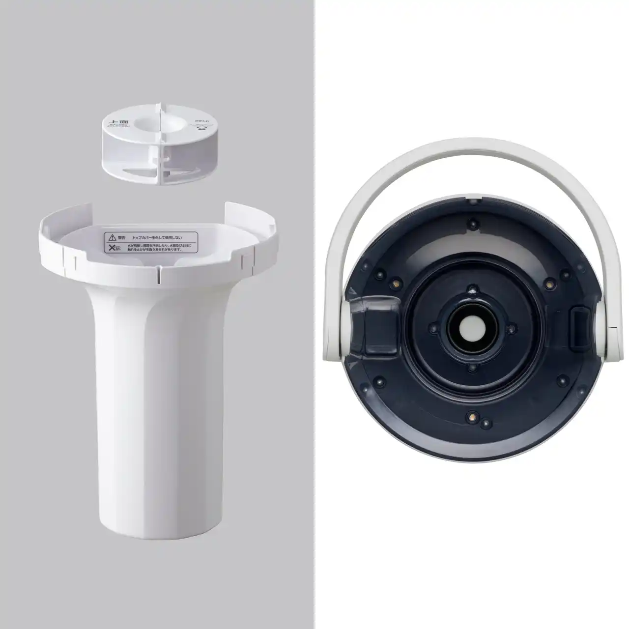 不衛生になりやすい水と空気が触れるパーツがたった4つ(本体・トップカバー・インナーカバー・フローティングブースター)。給水時に手間なく分解洗浄、本体以外は吹き出し口含め丸洗い可能です。一番小さな手のひらサイズのフローティングブースターも工具なしで中心から簡単に開くことができ、部品を洗う際、極力凹凸が少なく手が入る配慮がされており、日頃から衛生的に使用ができます。 |