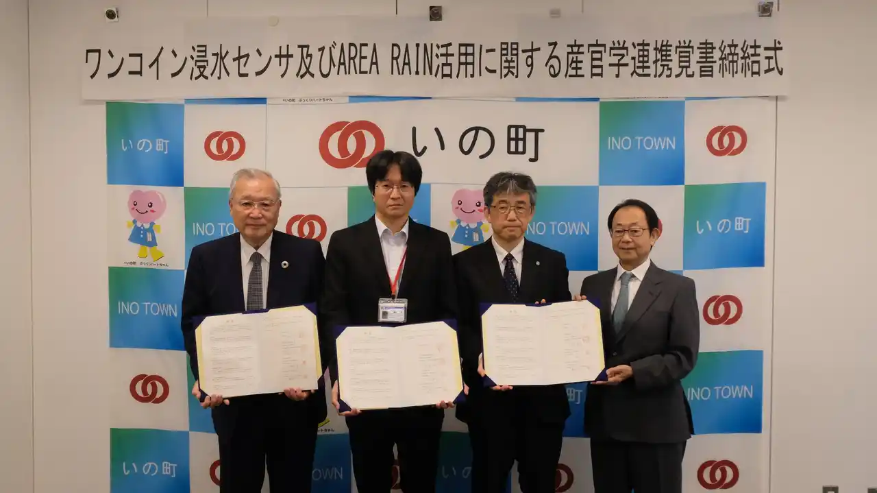 | 近年、全国的に水害の頻発化・激甚化が進む中、いの町では「仁淀川流域治水プロジェクト」に基づき、「安全に逃げる」ための対策を積極的に推進しており、町内に多数の浸水センサを設置、住民に情報公開しています。しかし、浸水センサは浸水検知後に反応するため、避難誘導や交通規制などの初動対応に課題があり、客観的根拠で浸水予測を可能とすることが求められていました。 | |||