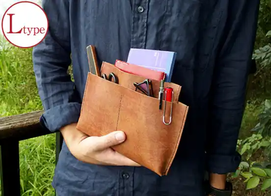 職人の手仕事によって一つひとつ丁寧に仕立てられたこのレザーポケットは、A4サイズの書類やタブレット端末をスマートに収納できる大きめサイズ。外側と内側に計5つのポケットを備え、ペンや名刺入れ、スマートフォンなどを効率的に整理できます。