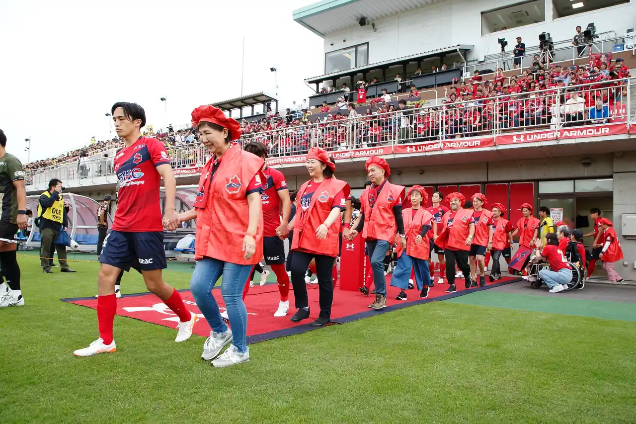 試合前に高齢者施設の入居者の方から、会場全体に向けて選手へのエールを一言いただき、選手入場時に花道シニアをしていただきます。 なお、本企画はJリーグとサントリーウエルネスの取り組む「Be supporters! 」‟人生の先輩からのエール”企画の一環として取り組むものです。 |