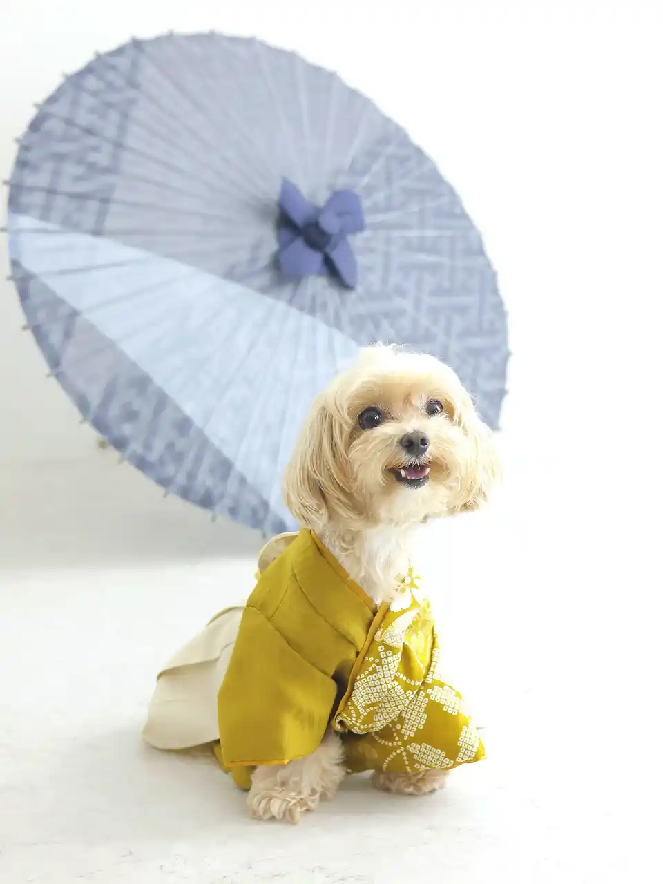 着物は、すべてセルフィットオリジナルデザイン。人と犬でカラー・柄を合わせた特別仕様で、愛犬と一緒に、ぬくもりと上品さが共存する“おそろいの一枚”を残せます。 撮影は、白い壁とナチュラルな光がやわらかく包むスタジオで行われ、従来の和装フォトの堅さを感じさせない、今らしいナチュラルな和モダンテイストに仕上がります。 |