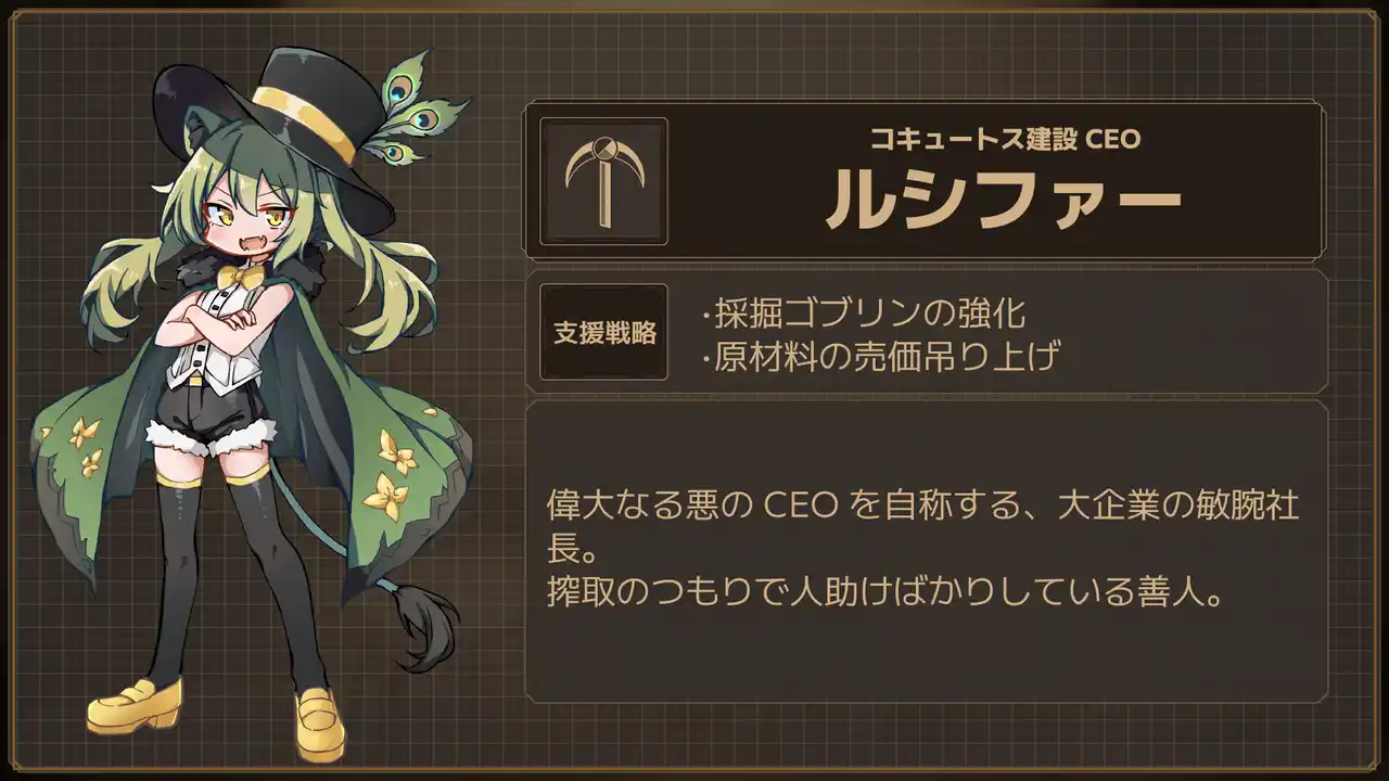 彼女たちは人事権や法の施行などの力を持って、あなたの工場拡張を手助けしてくれます。 |