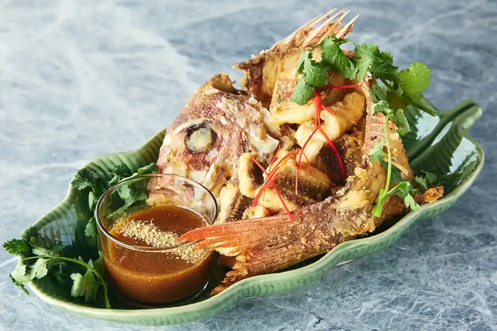 Longrain(恵比寿) 海鮮のクリスピー姿揚げ スパイス、タマリンドソース 3,960円 |