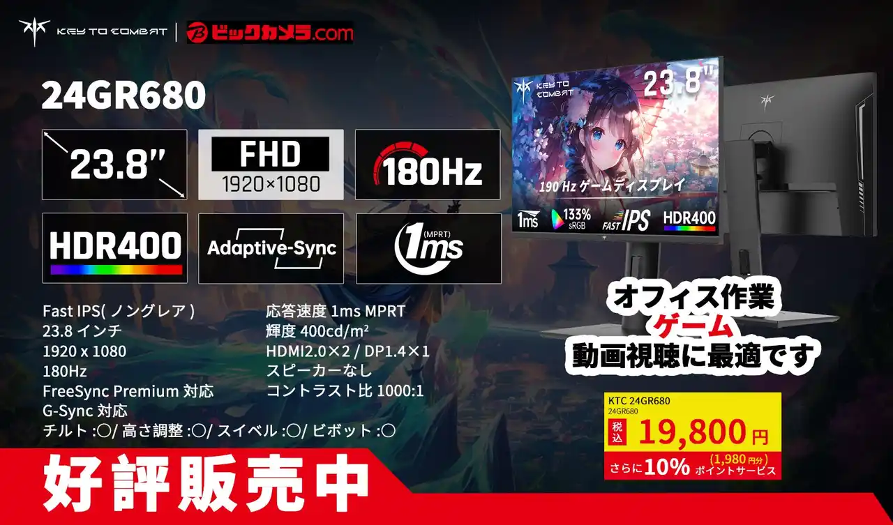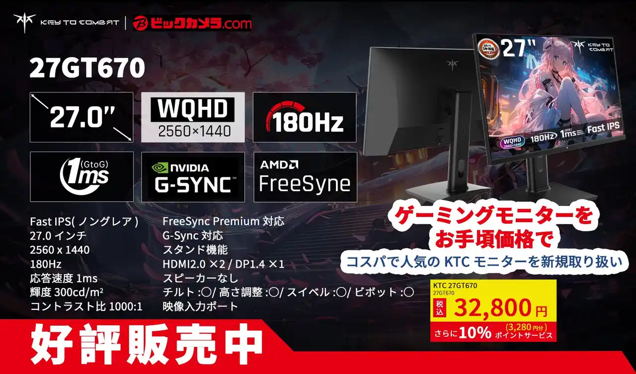 「ゲームの見え方」が変わる―― KEY TO COMBATは、ビックカメラ出店を機に、さらに身近な高性能ブランドとして進化を続けます。実際の画面の美しさと滑らかさを、ぜひ店頭で体感してください。 |