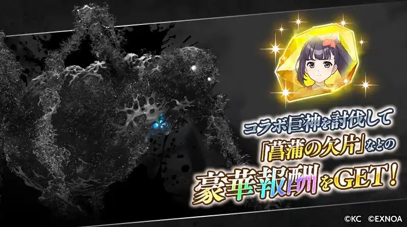 巨神討伐戦では菖蒲の限界突破が可能な「菖蒲の欠片」、黒煙りの巨神の襲撃ではコラボ限定神器を作成可能な限定金型が交換可能です。 |