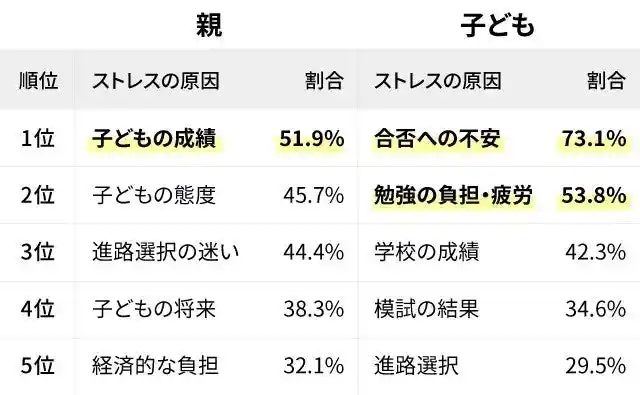 高校受験における親のストレスの原因1位は「子どもの成績」 |