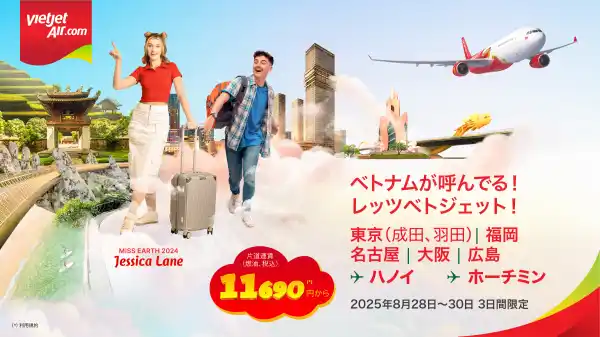 (東京, 2025年8月27日) - ベトジェットは国内外全路線を対象に、数十万枚もの航空券を破格の運賃で提供するチケットプロモーションを8月30日まで実施しており、旅行者の皆さまにハノイ、ホーチミンなどベトナムへの次の旅行先を予約できる絶好の機会をご提供しています。