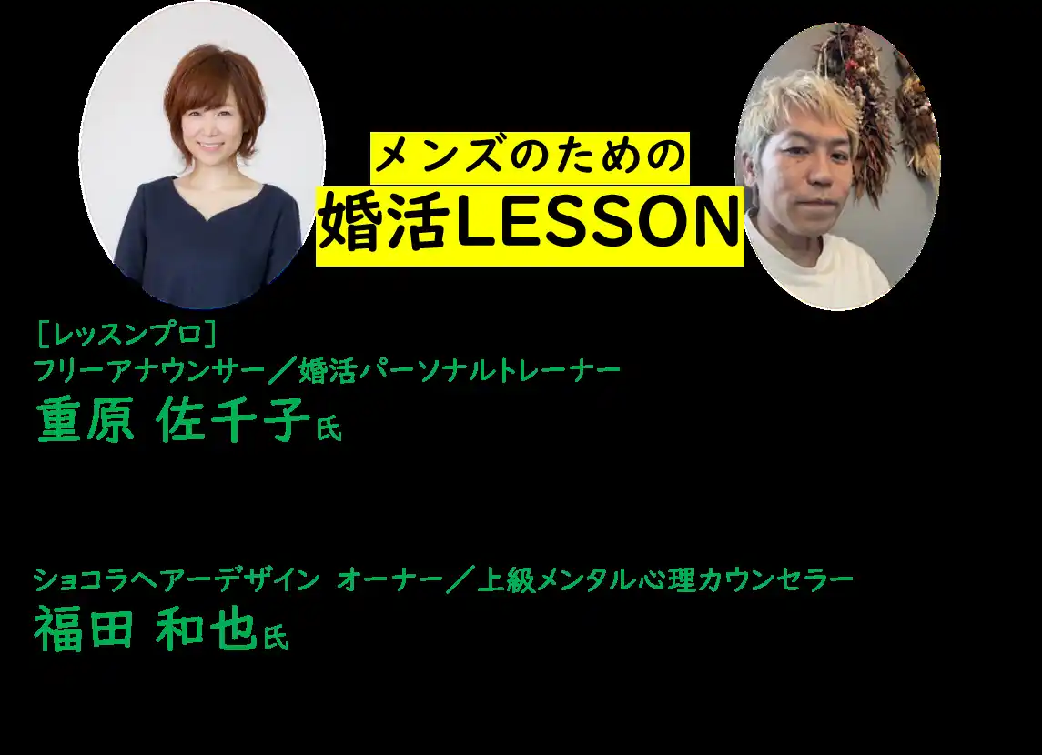 婚活イベントへの参加を検討している男性向けに、無料で婚活LESSONを開催します。人に好かれる話し方や、次に会いたいと思わせるコツ、髪形や服装のコーディネートなどについて、専門家が個別にサポートします。 |