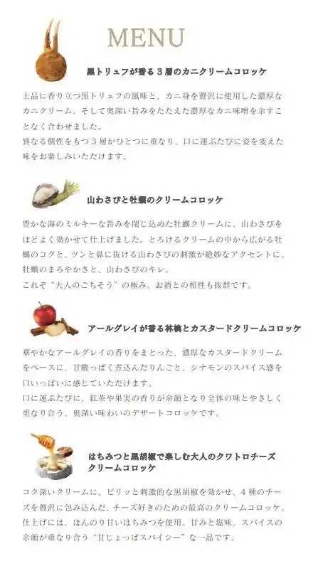 他には類のない高級食材を使用したクリームコロッケ専門店 |