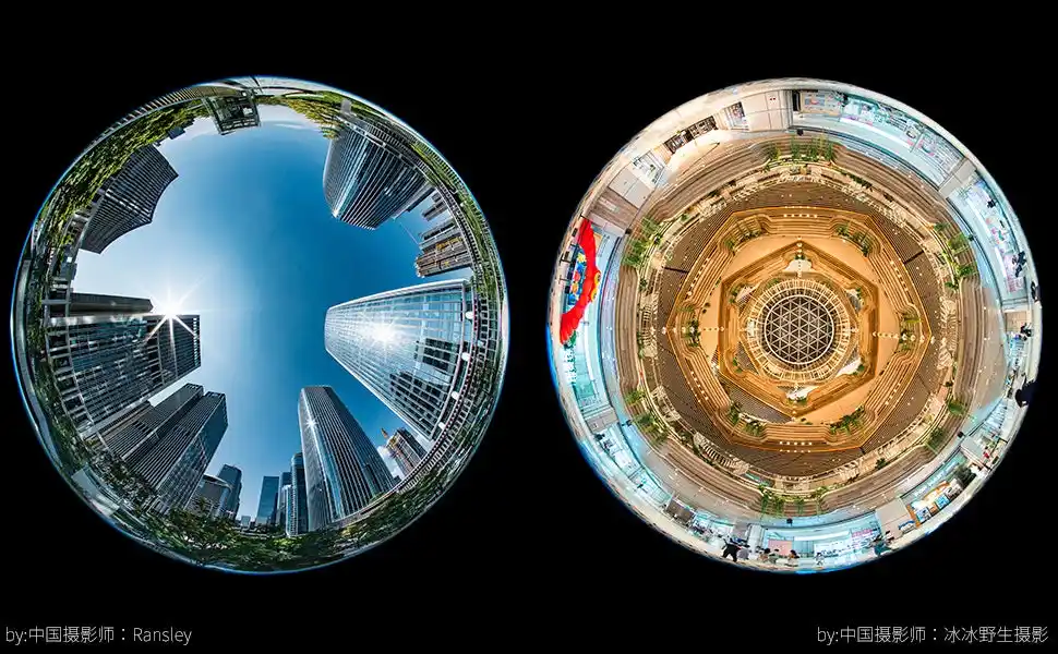 全方位を包み込むような映像表現。世界を球体に凝縮したかのようなユニークな写真を撮影可能。 |