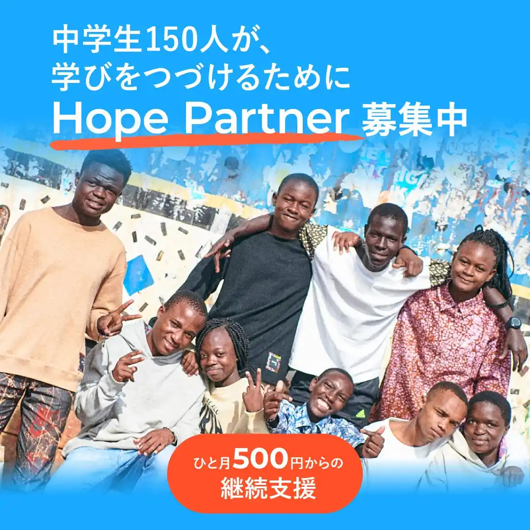 ● 寄付プログラム連動:「ホープ・サポーター」(マンスリー寄付)の募集も同期間に実施し、就学継続を支える基盤整備につなげます。 |