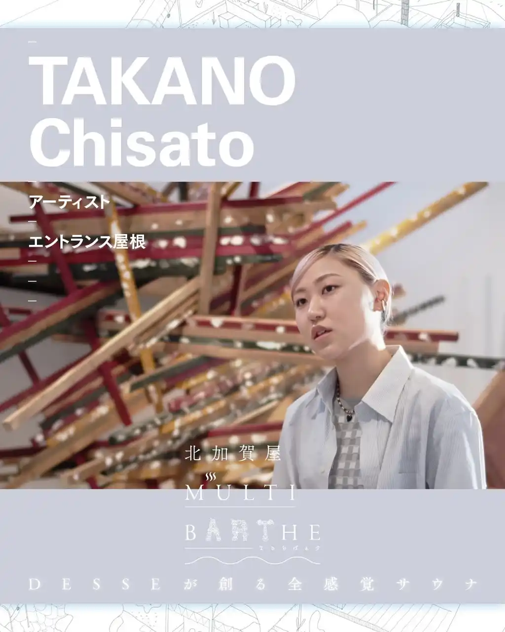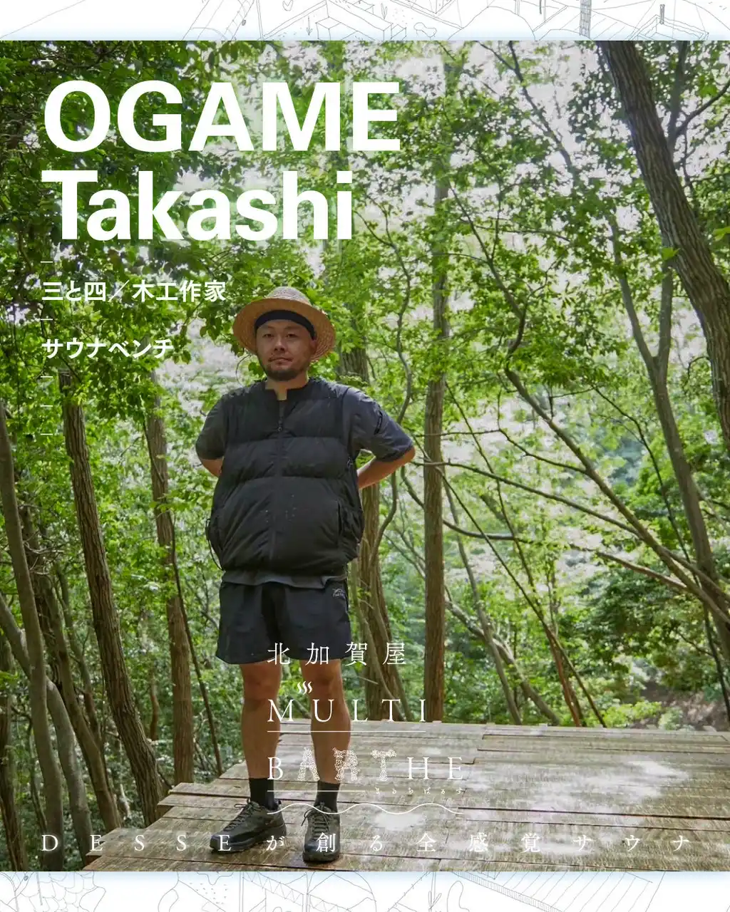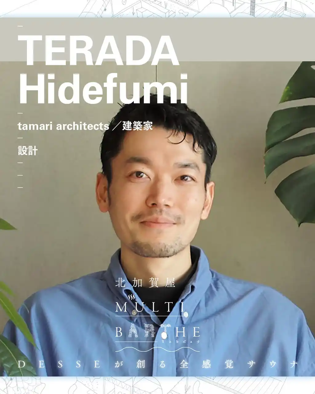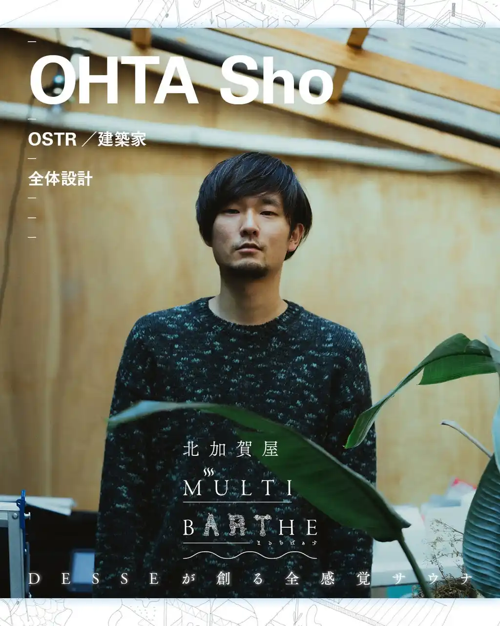 【代表作】 「大阪サウナDESSE」2023 心斎橋商店街に面した元ボーリング場の11階建てビルの4階に、サウナを中心とした温浴施設を作るプロジェクト。 テナントビルによる制約も多く、屋外空間もない閉鎖的なコンテクストの中で、「日常の延長」としてのサウナにするために、人それぞれで多様な動線が生まれる「庭のような建築」を考えた。 |