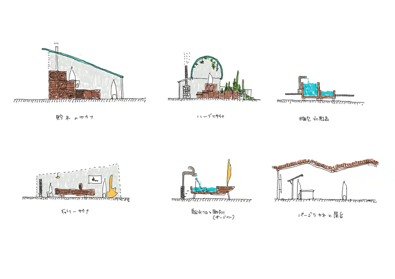 北加賀屋の海辺の風景を取り込みながら、様々なアーティストが関わり、触覚/視覚/嗅覚など身体の全ての感覚を再認識させる、サウナの本質体験を提供します。 |