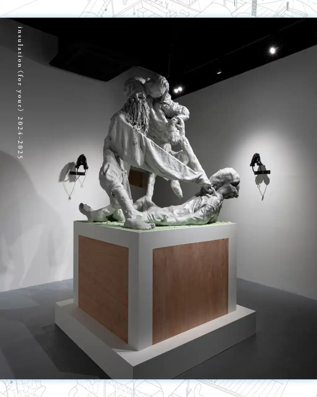 【代表作】 「insulation(for your)」2024-2025 サイズ:h2350×w960×d960 素材:紙粘土、FRP、鉄、着なくなった服、木、ラッカー塗料、外壁用塗料、ハンダ鋳造 |