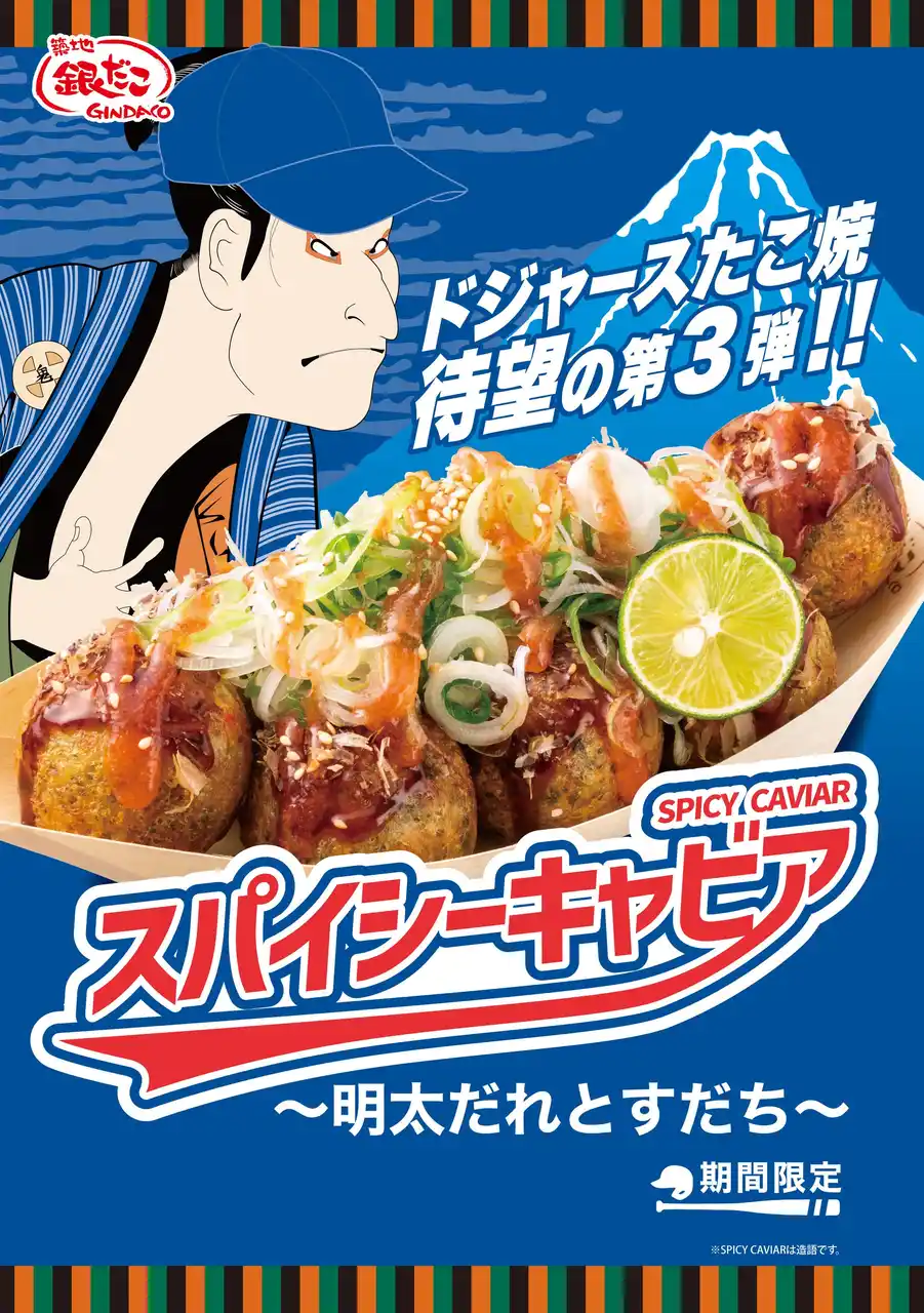 | 築地銀だこ を国内外に展開する 株式会社ホットランドホールディングス(本社:東京都中央区、代表取締役社長:佐瀬守男)は、ロサンゼルス・ドジャースと協力し、コラボレーションによる第3弾商品 MLB 2025シーズン 『スパイシーキャビア ~明太だれとすだち~』 を、アメリカでの先行販売を経て、2025年9月8日(月)より、全国の築地銀だこ店舗(※一部催事・競馬場・球場等の店舗を除く)にて、期間・数量限定で発売いたします。 | |||||||||