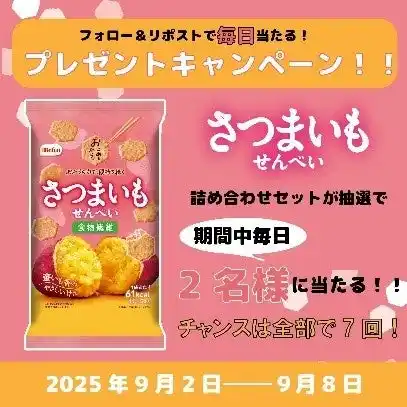 | 「おこめとおから。さつまいもせんべい」詰め合わせを期間中毎日2名様(計14名様)にプレゼント | ||||||||||
