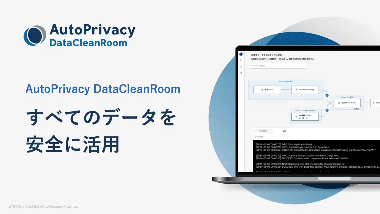 株式会社Acompany(アカンパニー、愛知県名古屋市西区、代表取締役CEO 高橋亮祐、以下Acompany)は、データクリーンルームソリューション『AutoPrivacy DataCleanRoom』が、主要なクラウドプラットフォームであるSnowflake、Amazon Web Services (AWS)、Google Cloud Platform(GCP)、Microsoft Azureに対応したことをお知らせいたします。