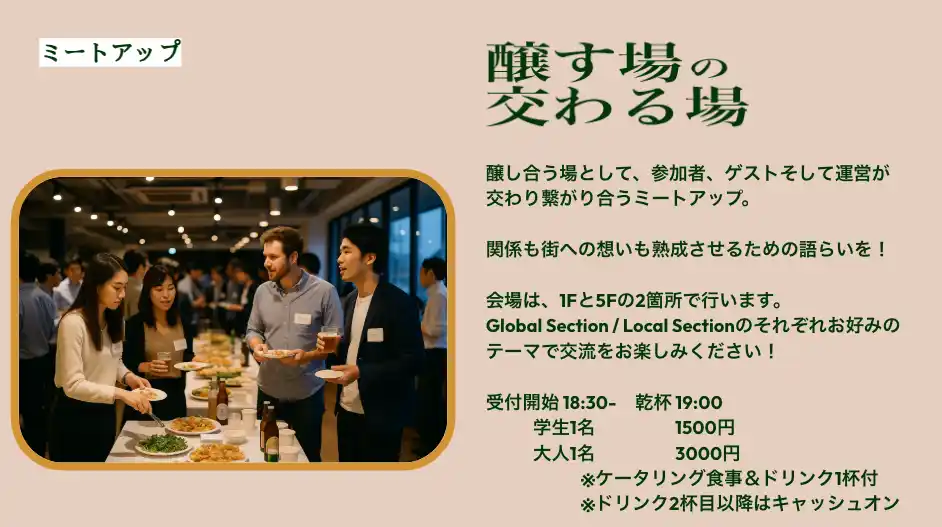 醸す場の交流する場 ミートアップ 18:30~20:30 |