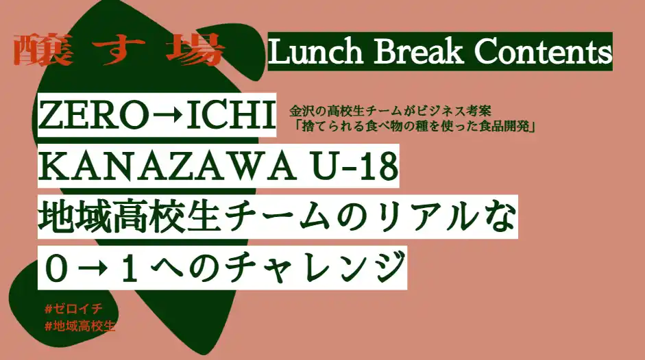 金沢の高校生チームがビジネス考案「ZERO→ICHI KANAZAWA U-18」プレゼンツコンテンツ 12:00-13:30 |