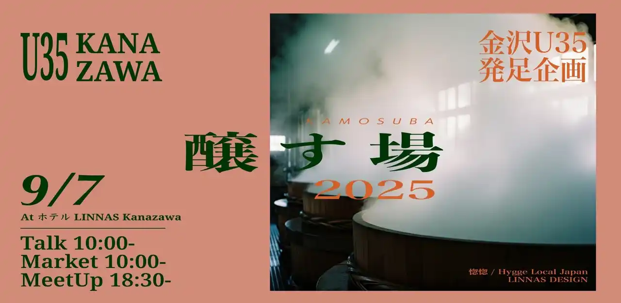 石川県金沢市に、新しい交流と創造の“うねり”を生み出す初回イベント『醸す場2025』が誕生します。歴史を受け継ぎつつ新しい時代をつくる若手と、これまでを築いた世代、地域内外が交わる“場”を育て、文化を少しずつ醸していく。その象徴的な一歩として、9月7日 HOTEL LINNAS Kanazawaでトーク、カルチャーマーケット、ミートアップを開催します。 |
