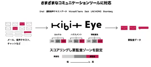 KIBIT Eyeは、自社開発の特化型AI「KIBIT(キビット)」(日米特許取得済み)を搭載し、企業におけるリスクの早期発見や不正の予見を支援するAIソリューションです。 |