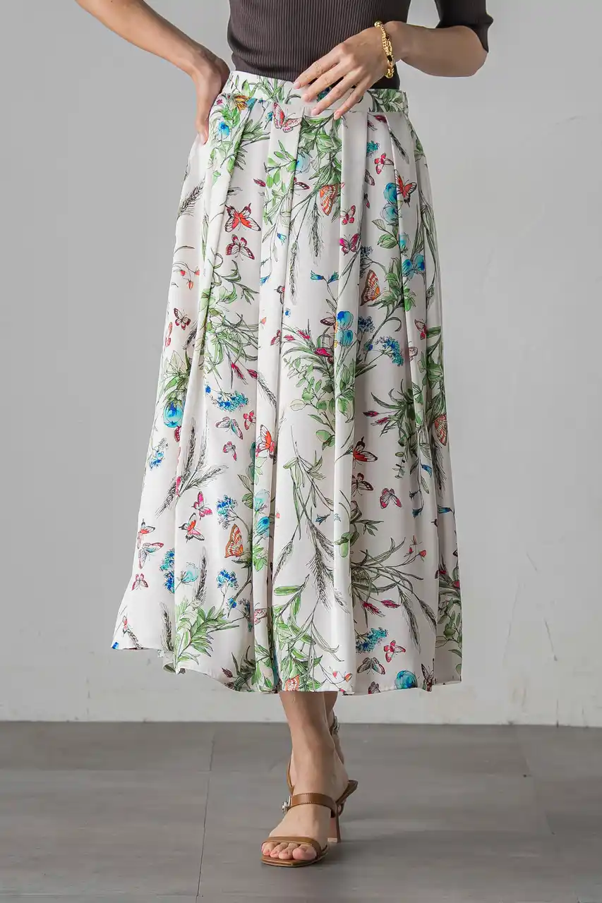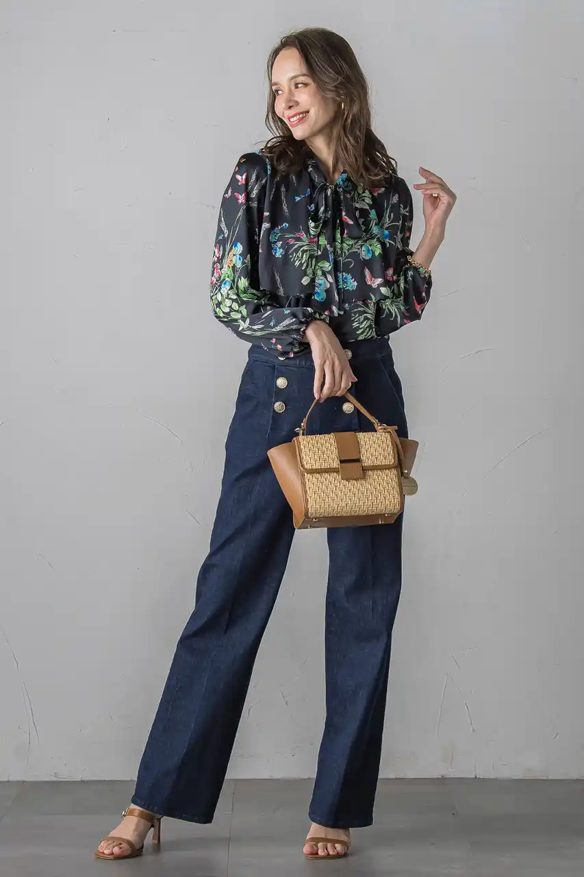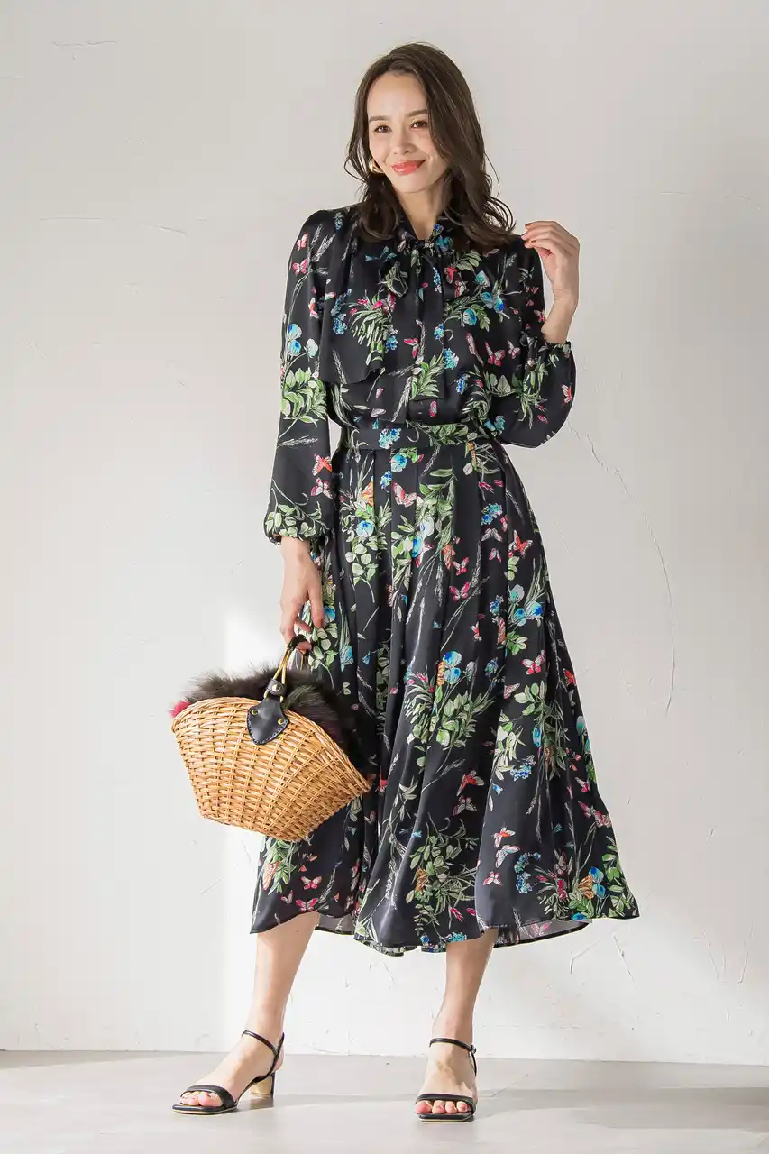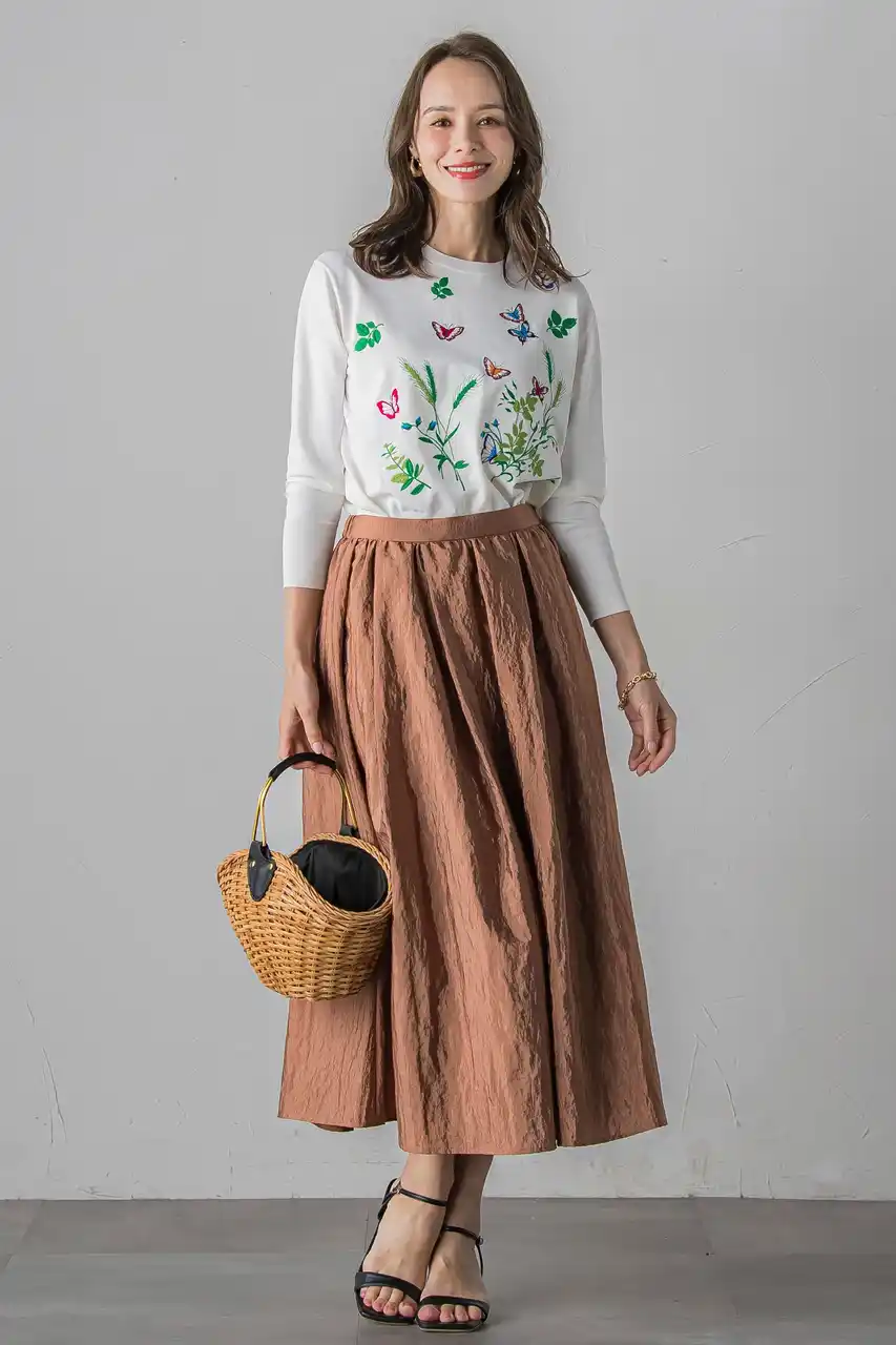 京都のアトリエでビアッジョブルーのためだけに、手書きで描かれた繊細なバラフライ柄が、 落ち着いた秋の装いにそっと華やぎを添えます。 大人の女性にふさわしい、アートのような一着です。 |