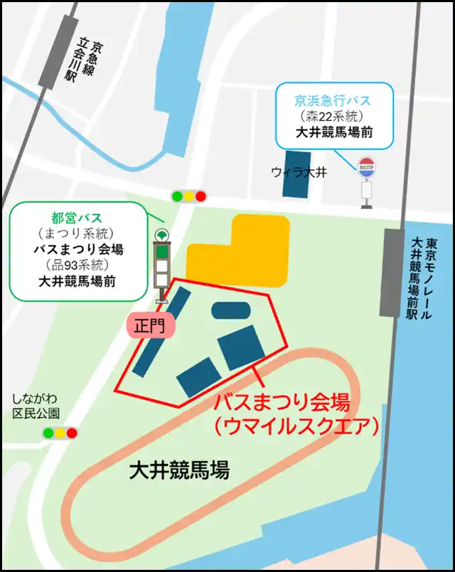 | 品川駅港南口 ⇔ バスまつり会場(大井競馬場前)所要時間約15分 | |||||||||||||||||||