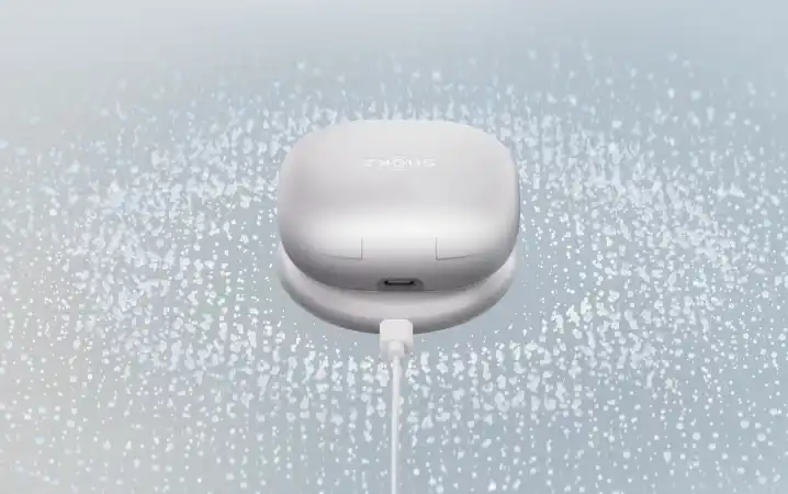 今回のアップデートでは、バッテリー性能も進化し、更に手軽に充電できるようになりました。本体単体で最大11時間、充電ケースと併用すれば最大48時間の再生が可能です。10分間の急速充電で約2時間使用できる利便性はそのままに、新たにQiワイヤレス充電に対応しました。これにより、ケーブルを繋がず“置くだけで充電”が可能となり、デスクやベッドサイドでの充電習慣が格段にスマートに。従来モデルの強みであった長時間再生に加え、より自由でストレスのない充電体験を提供します。 |