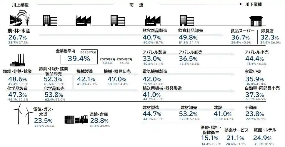 サプライチェーン別の価格転嫁、川下産業や公的価格に制約される業種ほどより厳しく |