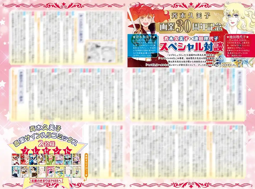 | 口絵には斉木久美子先生画業30周年記念で「斉木久美子×池田理代子のスペシャル対談」が掲載! | |||||||||||||||