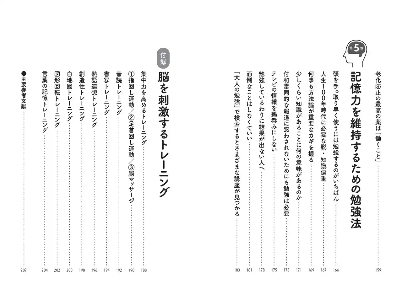 70代以降が記憶力を維持するのに役立つ具体的な方法として、「声に出す(音読)」「手で書く(筆記)」「よく眠る(睡眠)」をはじめとした、さまざまな方法をちょっとしたコツとともに紹介しています。簡単かつ日常生活で続けられるものばかりなので、本書を読みながら実際に試していくうちに、自分にピッタリの方法を見つけることができるでしょう。 |