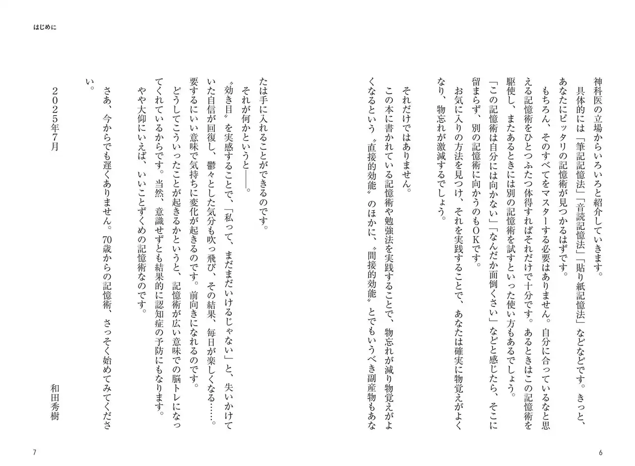 本書は、30年以上にわたって精神科医として高齢者医療に携わってきた和田秀樹氏が実践する、高齢者の記憶力の維持に役立つさまざまな脳の習慣をまとめた一冊です。70歳以降も記憶力を維持することは、物忘れを減らすだけでなく、認知症を遠ざけることにも繋がります。