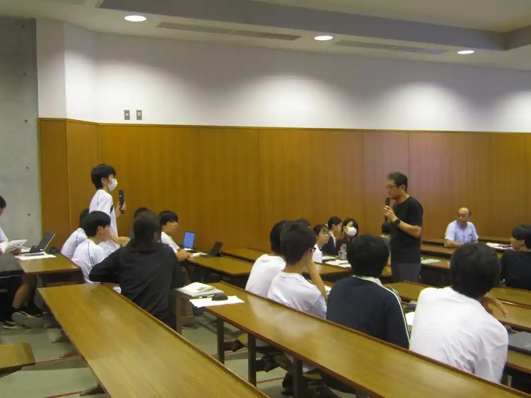 講演後の質疑応答では、語学などの自己啓発や読書の重要性について質問が集中しました。桜井氏は「良質なアウトプットのためには、良質なインプットが必要」と語り、読書の習慣を推奨し、おすすめの書籍もご紹介いただきました。これから夏休みに入る学生たちの学びへの意欲の高さが際立つ時間となりました。 |