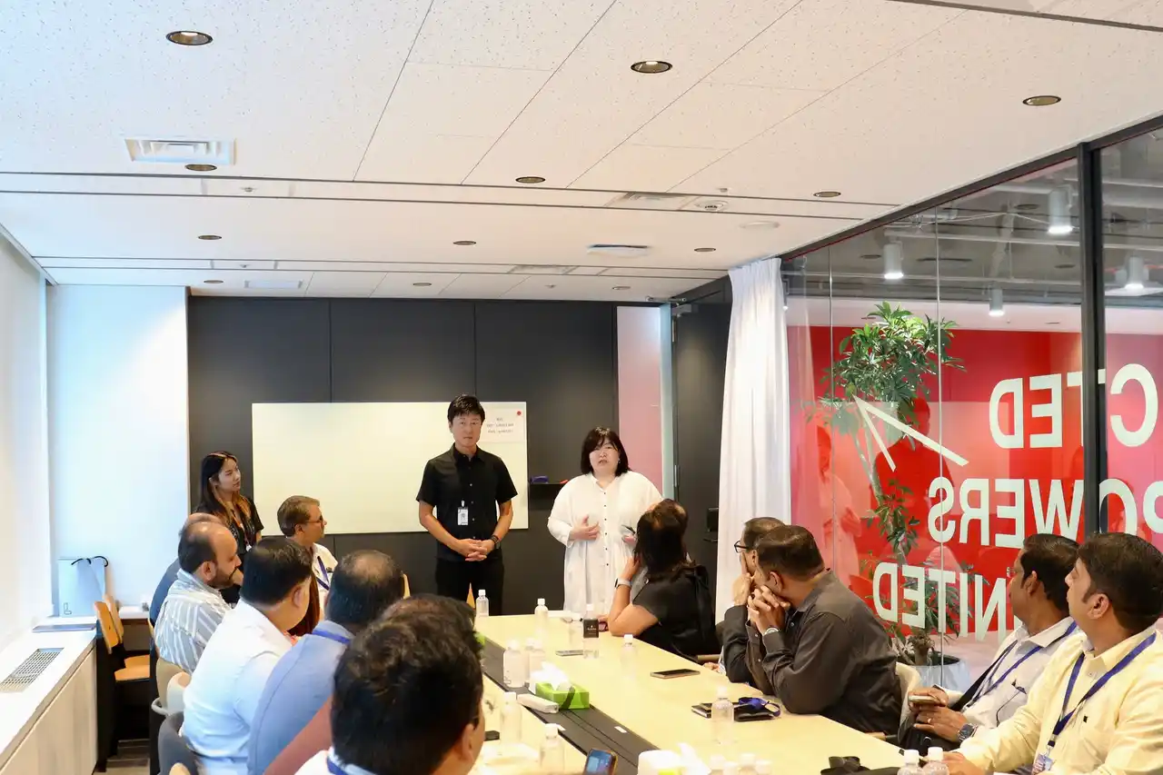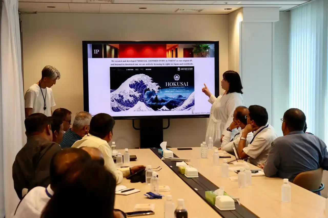 当日は、当社の主力事業である映像制作を中心に、アート、webtoon、映画など、多岐にわたるエンターテインメント事業の取り組みについてご紹介いたしました。さらに、近年力を入れているインドでの事業展開に関する事例を紹介すると、参加者の皆様より様々な質問が飛び交いました。本交流を受けて来訪者の皆様からは、「今回の視察では、ギークピクチュアズへの訪問を特に楽しみにしていました。実際にクリエイティブかつ先進的な取り組みの事例を拝見し、非常にインスパイアされました。」「今後、インドと日本の架け橋となるような新たなコラボレーションの可能性を探れることを楽しみにしています。」といった期待の声が多く寄せられました。 |