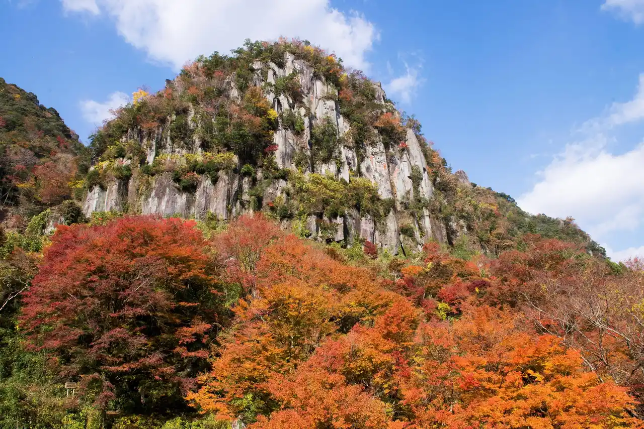 | 断崖絶壁の数々の岩肌に紅葉が連なる姿は錦絵の世界、九州が誇る日本三大紅葉のひとつをお楽しみください。 | ||||||||||||||