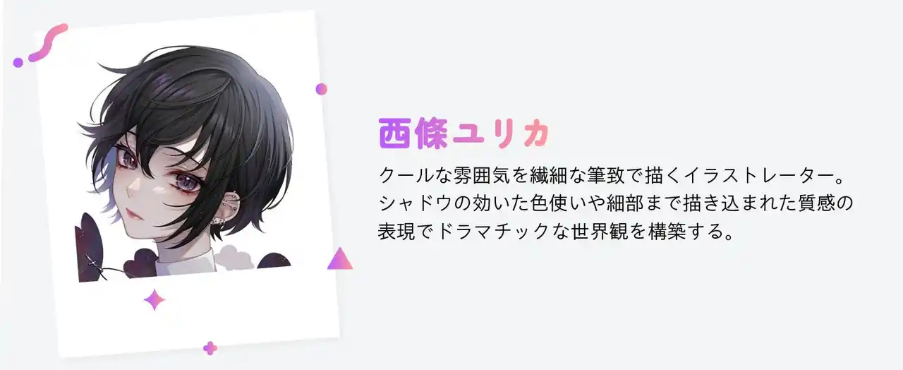 一部イラストは、Pixioオフィシャルアンバサダーをモデルとして描き下ろしていただきました。 |