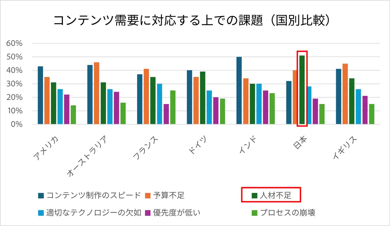 日本企業の最優先課題は「人材確保」:コンテンツ拡充に向けた体制強化が急務 |