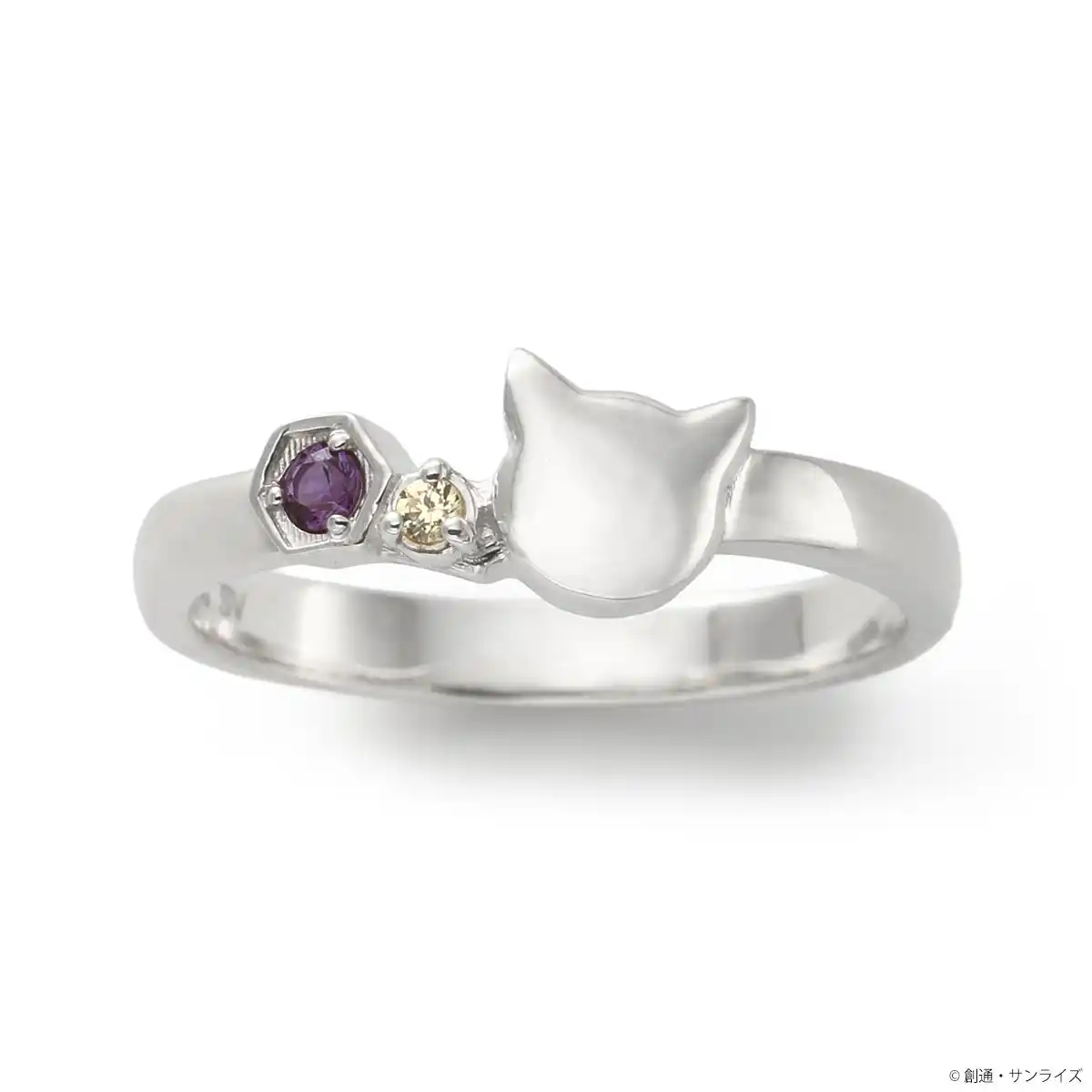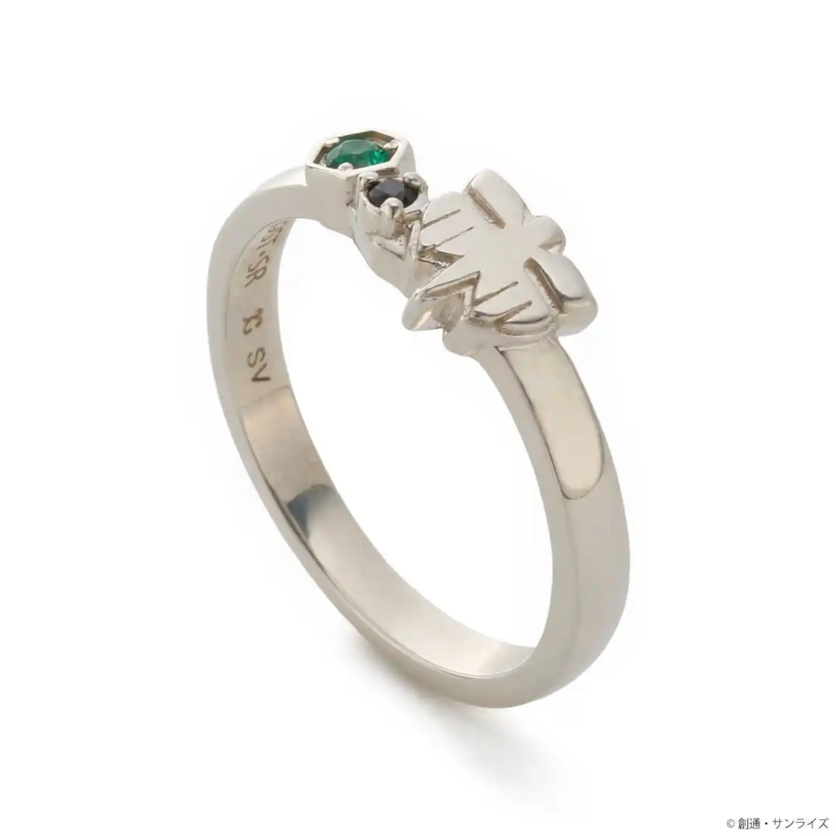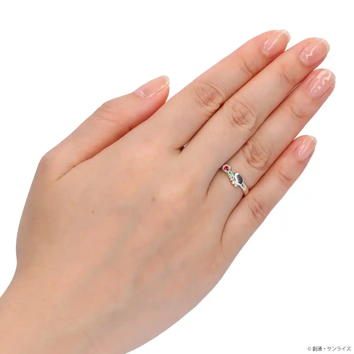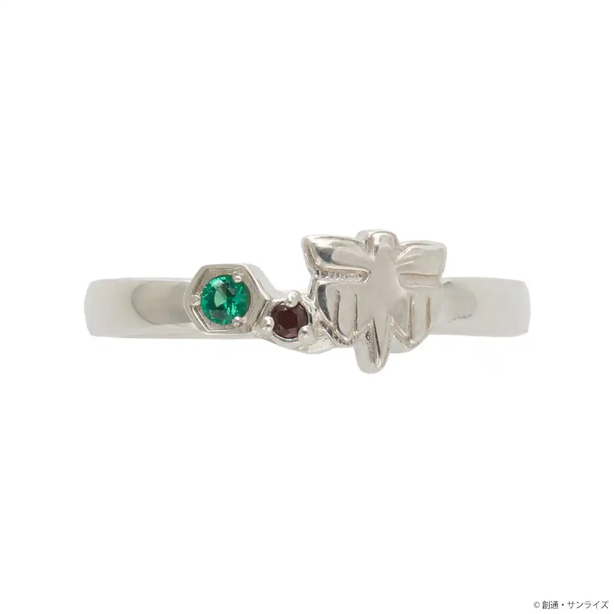 『機動戦士Gundam GQuuuuuuX』のアマテ・ユズリハ(マチュ)、ニャアン、シュウジ・イトウ、シャリア・ブルとシャア・アズナブルをイメージしたシルバーリングです。それぞれにクラゲ、ネコ、コンチ、中佐の胸章とヘルメットをモチーフに取り込んだゆるやかなV字ラインのデザインにイメージカラーストーンを2石セットしました。 |