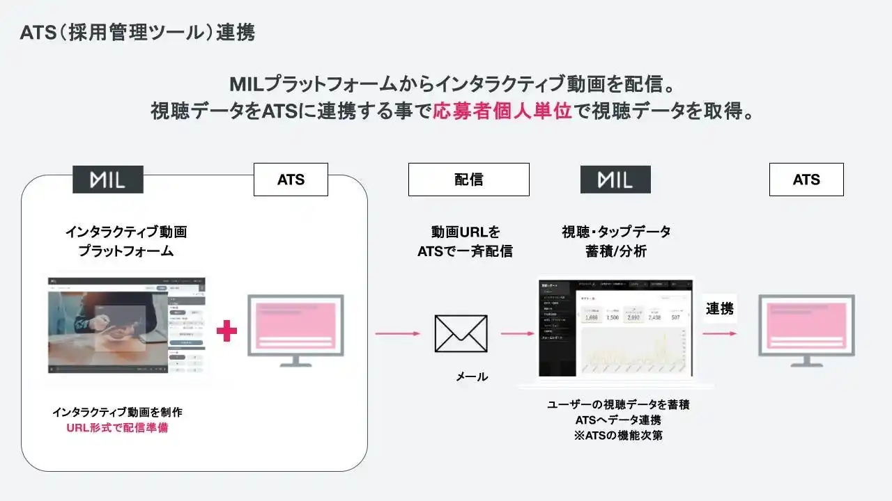 | 視聴データとATSを連携して、応募者個人単位と全体傾向の視聴データを取得。 | |||||||||