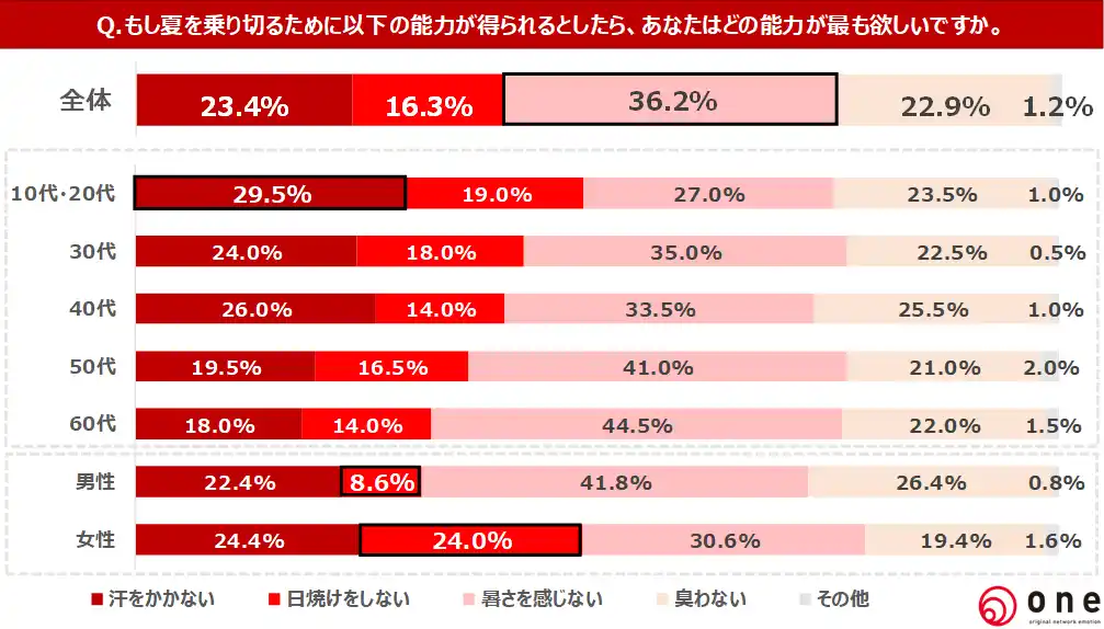 ●欲しい能力は「暑さを感じない」能力!10代・20代は「汗をかかない」能力が欲しい!