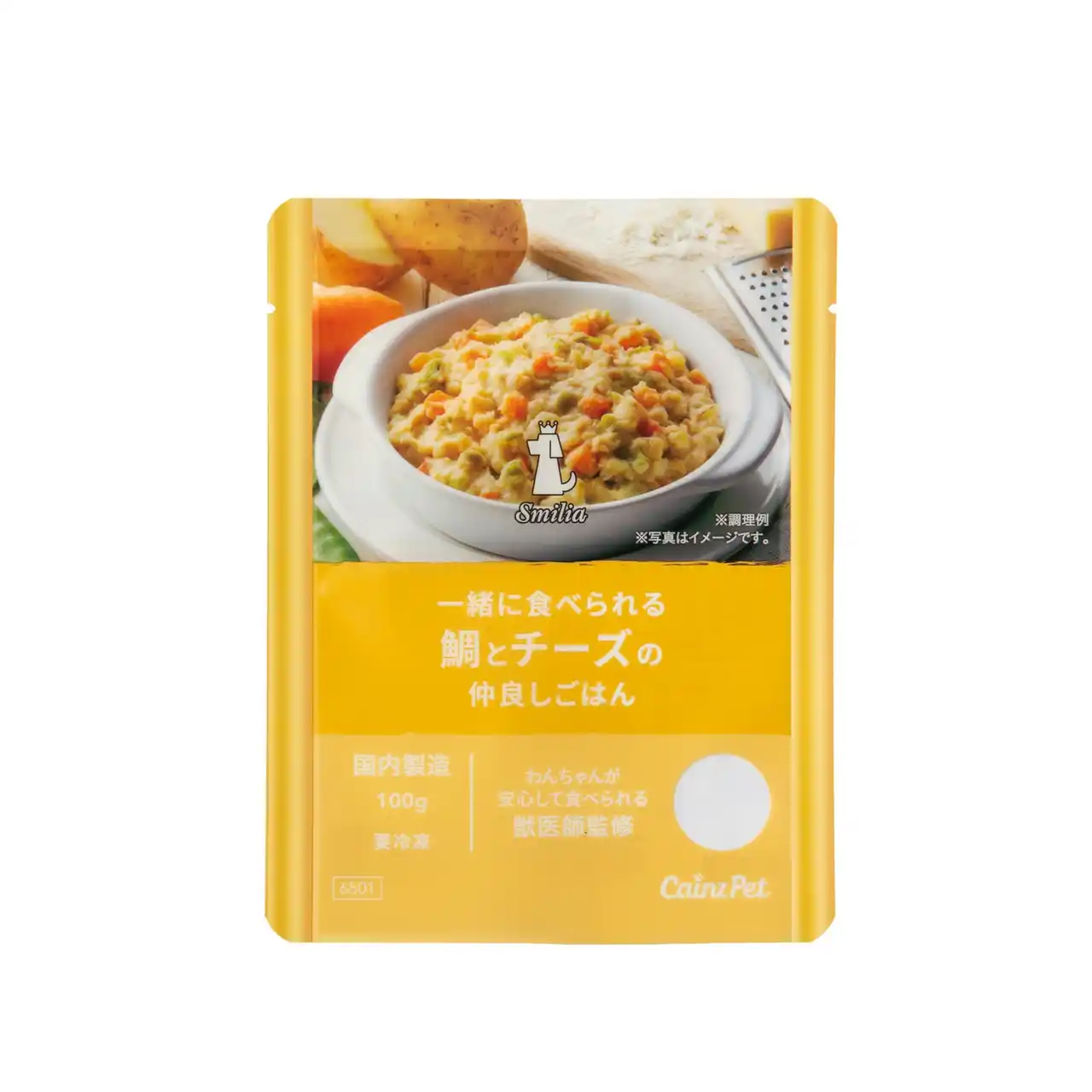 さらに本商品は、食品でありながら、獣医師が監修し、わんちゃんの総合栄養食の基準に沿った栄養設計を実現。食品工場で調理した後すぐに急速冷凍し、素材のおいしさと栄養をそのまま閉じ込めました。栄養バランスはもちろん、素材本来の味わいや見た目の楽しさにもこだわっているので、そのままでもドッグフードにトッピングしてもおいしくお召し上がりいただけます。飼い主とわんちゃんがともに笑顔になれるようにとの想いを込め、素材にこだわったカインズオリジナルの「スマイリア」シリーズの新商品です。 |