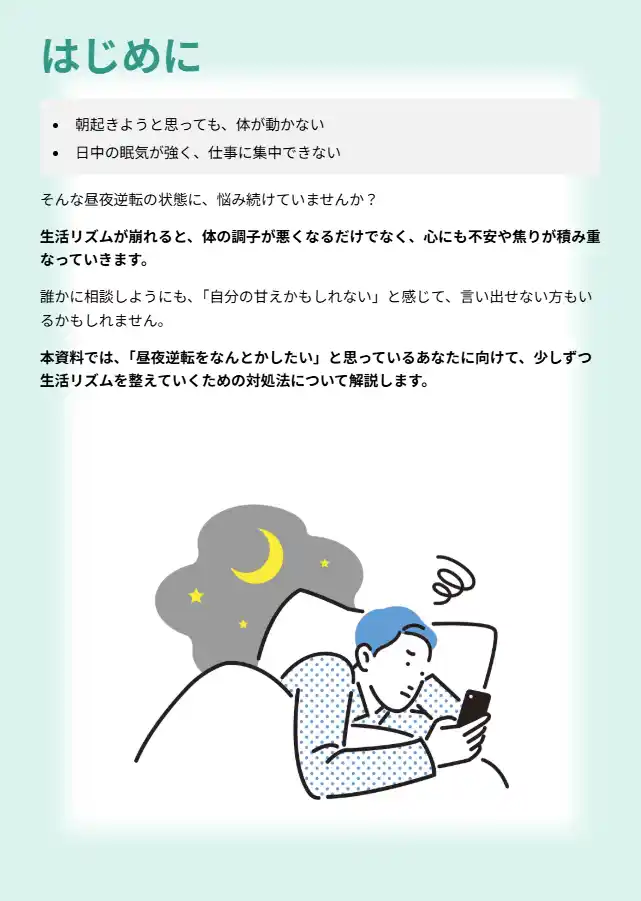 ぜひ本資料を活用して、昼夜逆転を一緒に解消しませんか? |
