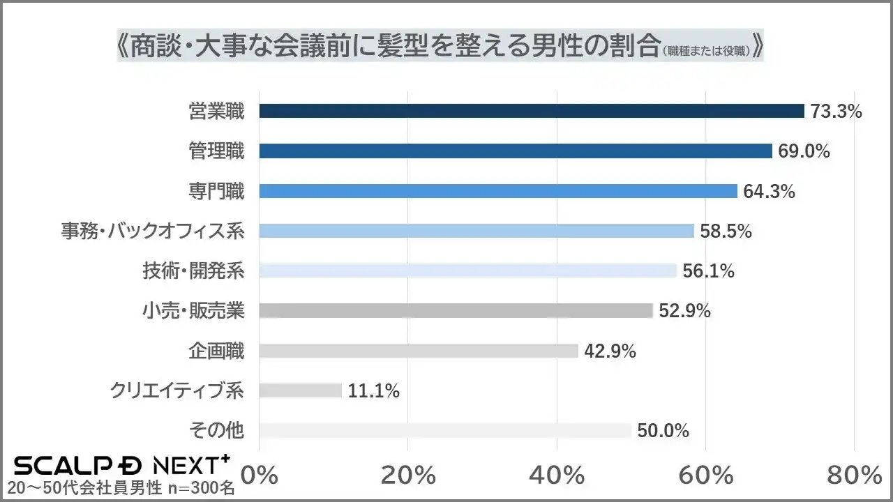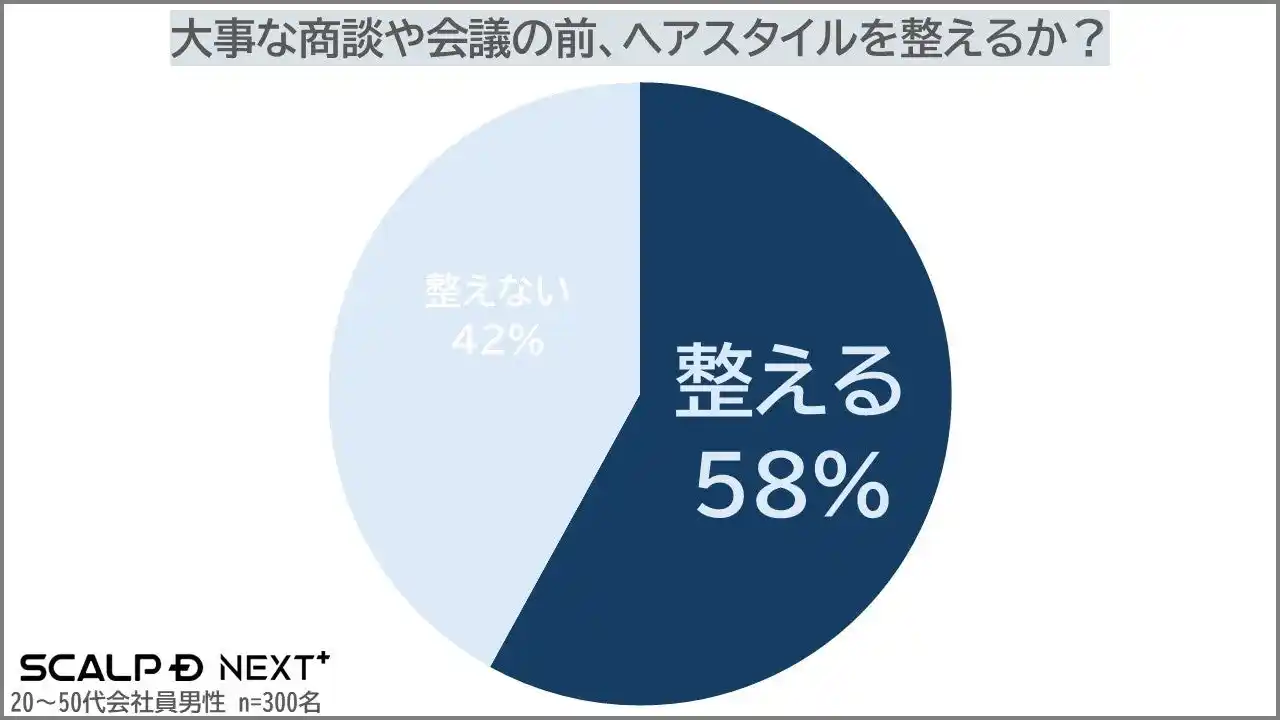 3.商談・大事な会議前に髪を整える男性は58.0%(174人)!職種を問わず髪型への意識が高いことが明らかに |