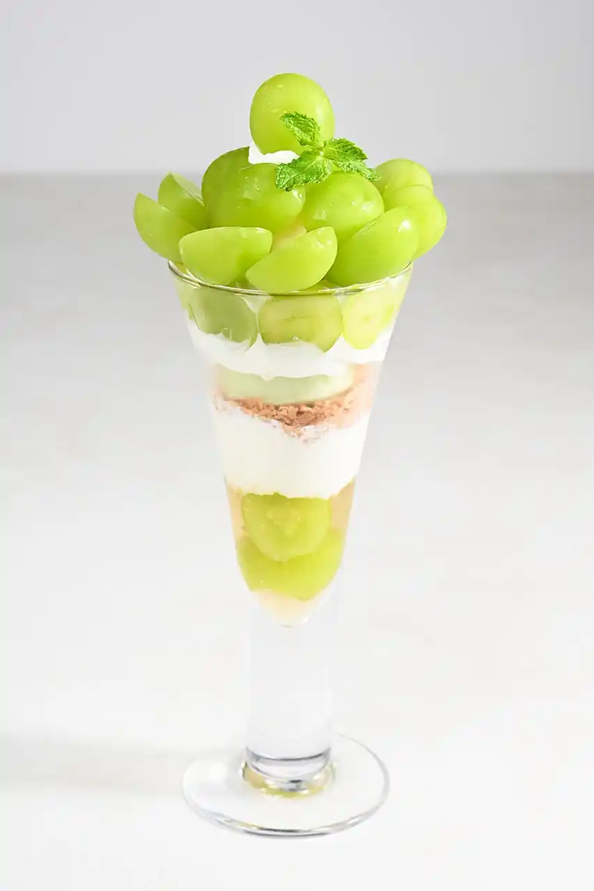 シャインマスカットの爽やかな甘みとヨーグルトのさっぱりとした風味は相性抜群。層の美しさにもこだわることで生まれた食材の重なりは、食べ進めるたびに変化をもたらし、ワクワクが止まりません。 |