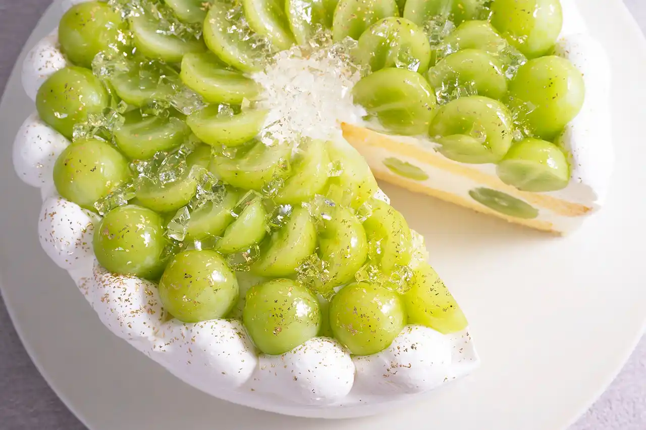 瑞々しく輝くシャインマスカットを惜しみなく使用したショートケーキ