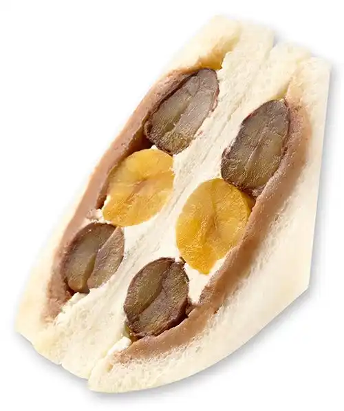 商品説明:和栗風味のクリームと生クリームを重ねた2層仕立てのモンブランサンド。トッピングには渋皮栗と甘露煮を添え、栗の豊かな香りと奥深い味わいを楽しめる、秋にぴったりの一品です。 |